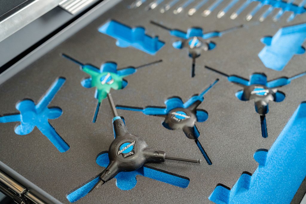 Mit Park Tool Werkzeugen, Park Tool Werkstattmöbeln, Thur Metall Einrichtung und Finish Line Zubehör statten wir deine Werkstatt so aus, dass alles reibungslos läuft und einen bleibenden Eindruck hinterlässt.